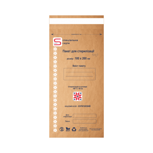 Крафт-пакет для стерилізації в сухожарі 100*200 мм коричневий